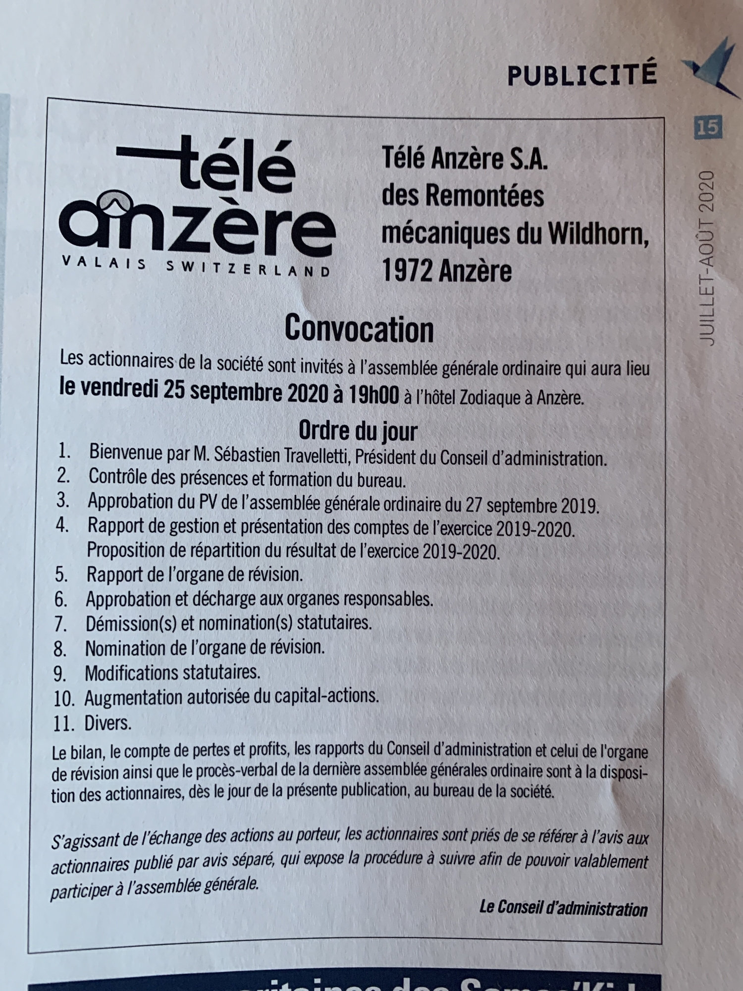 Je sors du conseil actionnaire très intéressant avec un Anzère très ambitieux !
