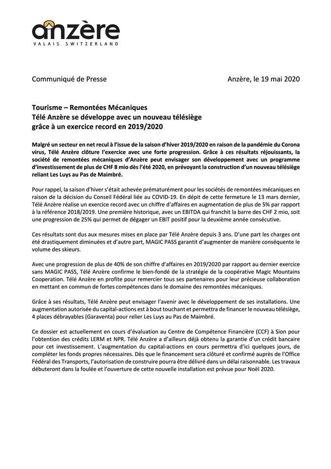 - la sortie de CMA du Magic Pass va rabattre des cartes pour l'année prochaine, probablement à l'avantage d'Anzère qui offre des conditions d'accès et de ski proches de Crans-Montana (niveaux pistes et enneigement),